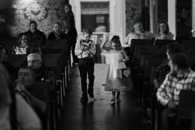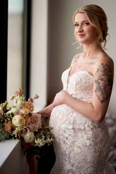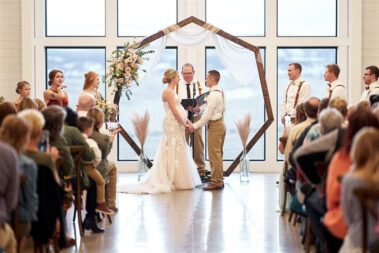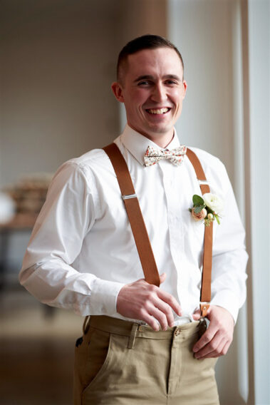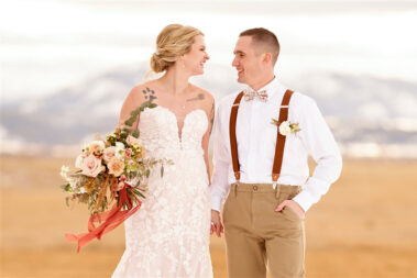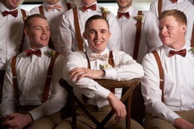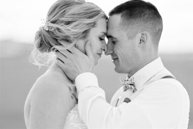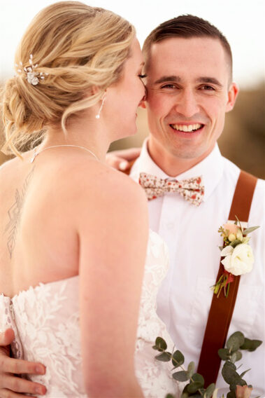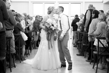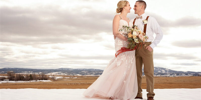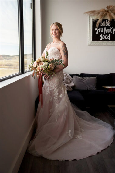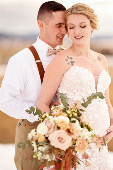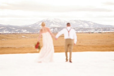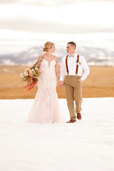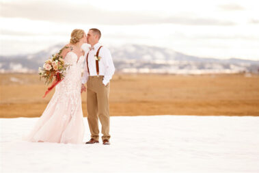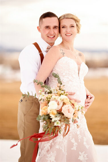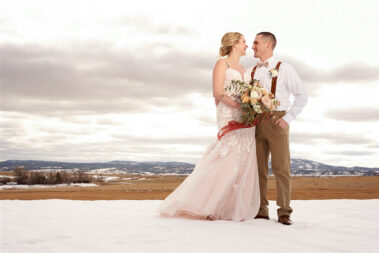 Scheduling a winter wedding in South Dakota (or the Midwest for that matter) is no simple feat. The ideal setting is a soft blanket of snow on the ground, little to no wind (<10mph), 30 degrees F, and maybe a gentle snow flurry just in time for outdoor couple’s portraits. Amanda was hoping for some snowy wedding photos, and while there wasn’t a blanket of snow over the entire acreage, there was a proverbial picnic blanket of snow on the northwest side of the Barn that did the trick. It was a bit colder than 30 and the wind was a little brisk, but Amanda and Kyle braved it for a hot (cold?) minute (er, five minutes?) for some beautiful photos.