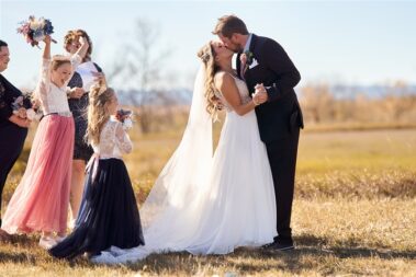 Planning weddings in October in South Dakota is like playing the lottery–when you win, you win big, but there’s always the risk of a full-blown blizzard, too. Fortunately, for Kayla and Brandon’s Rapid City area micro wedding, the sun was shining (I got a sunburn), the weather was warm (and windy, of course), and the sunset at the end of the afternoon was incredible.